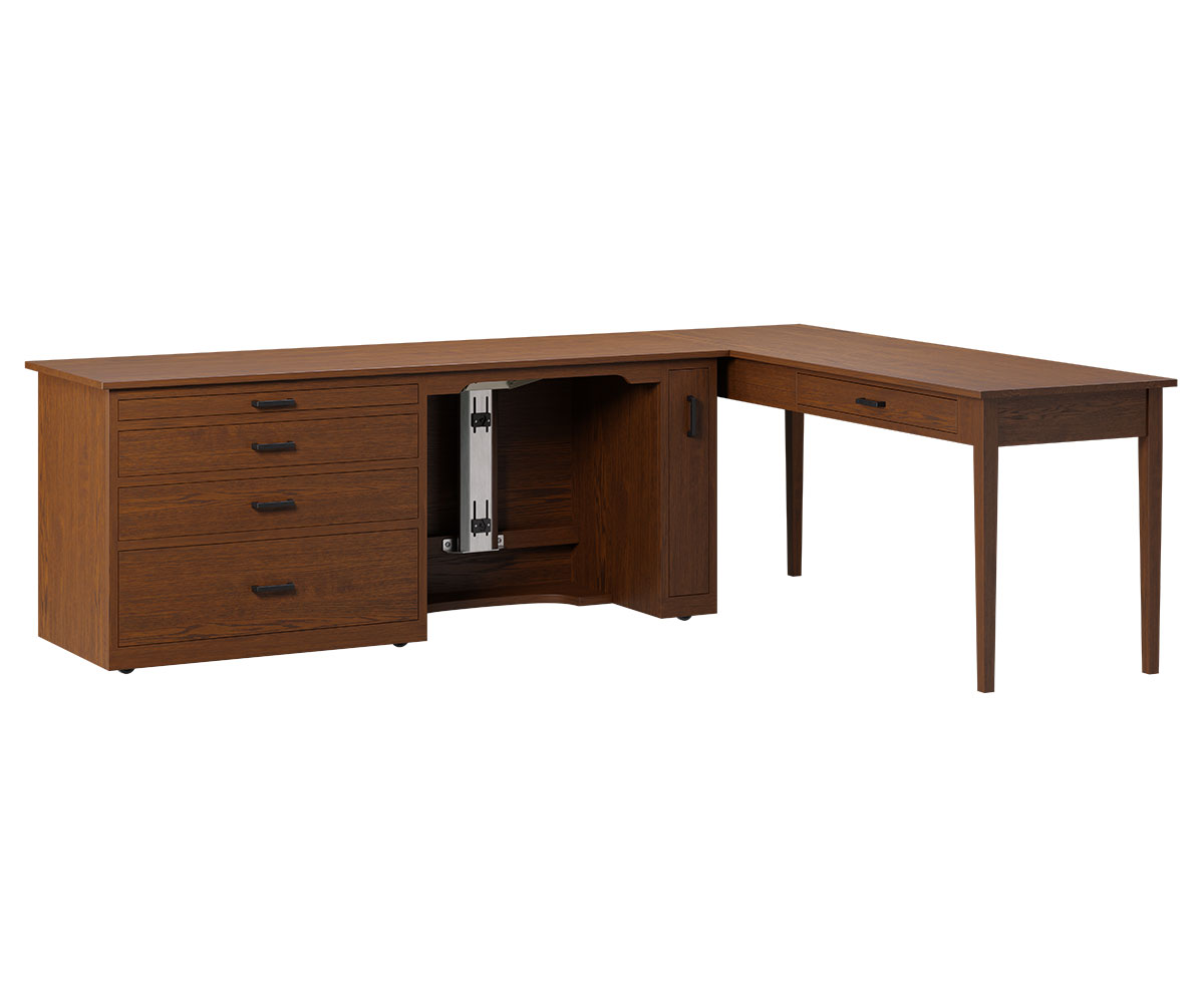 • Left extension rests on top dresser: 35″W x 18″D