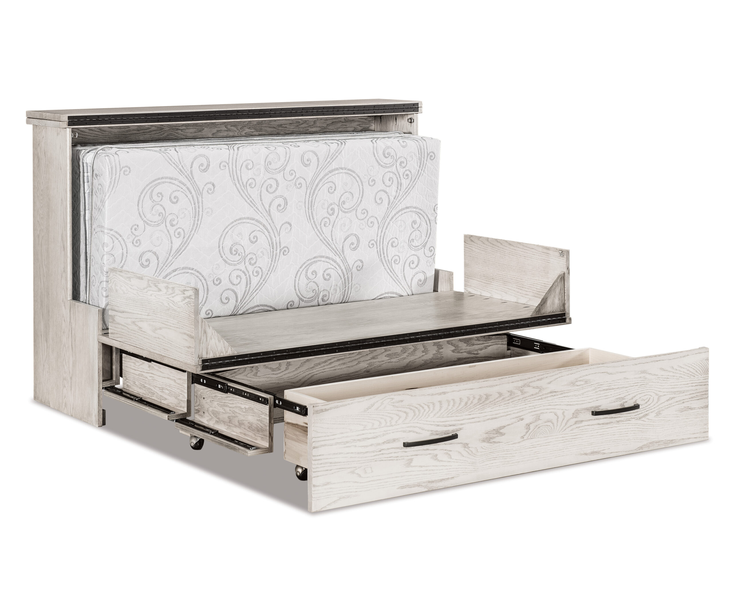 • Pillow storage drawers slide out for easy access