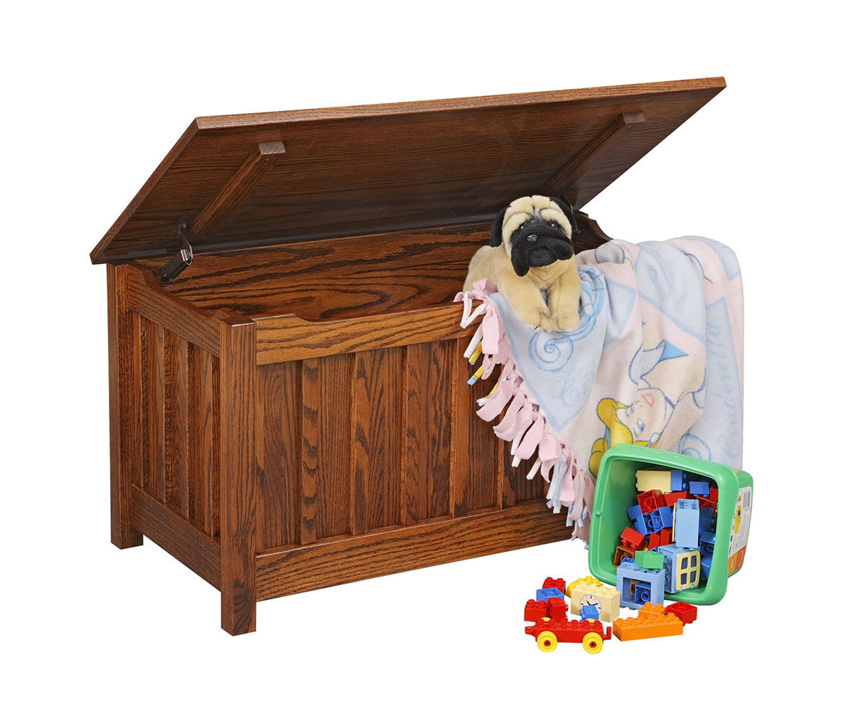 • Child safety hinge on the toy box lid